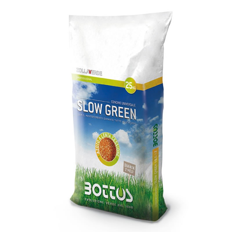 Il concime Slow Green è un fertilizzante minerale composto NPK a titolo 18-6 -12, contenente una frazione azotata a lenta cessione di circa il 35% dell’azoto totale. L’equilibrio delle forme nutritive tra pronto effetto e lenta cessione determina una regolare attività nel suolo a benefi cio della vegetazione per almeno 60 giorni, rappresentando uno strumento per molteplici usi applicativi che spaziano dall’impiego nell’agricoltura tradizionale (orticoltura, frutticoltura, colture intensive), all’impiego in arboricoltura, vivaismo, settore ornamentale e cura dei tappeti erbosi. Slow Green possiede, in altre parole, caratteristiche tali da renderlo interessante per l’impiego nei più diversi settori.